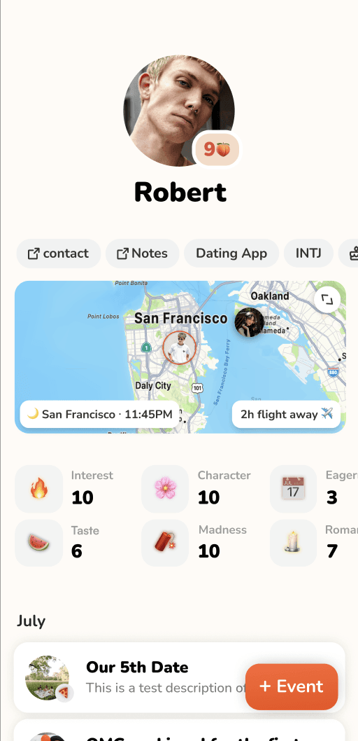 The dating CRM that doesn't look like a spreadsheet. Manage your peaches without loosing track.